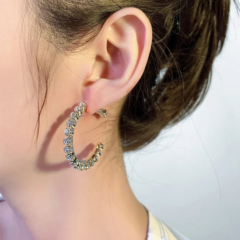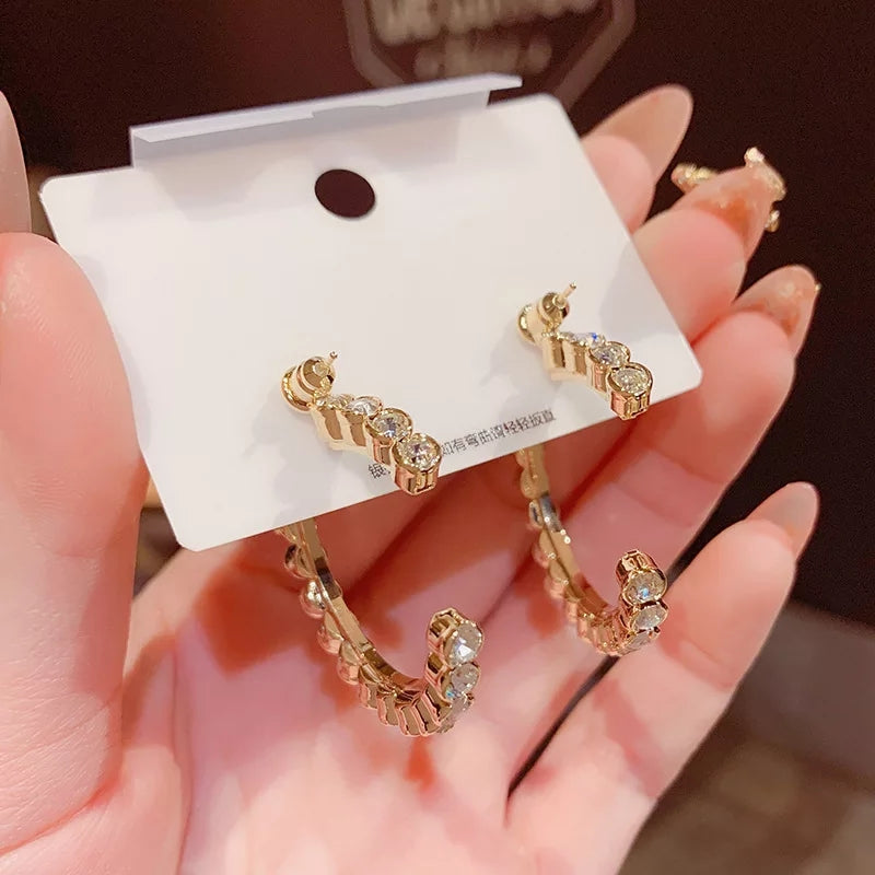 Bold Crystal-Studded Gold Open Hoop Beautiful Earrings – Zelvyn