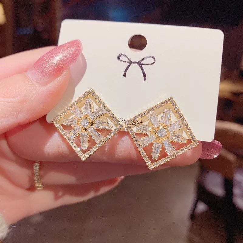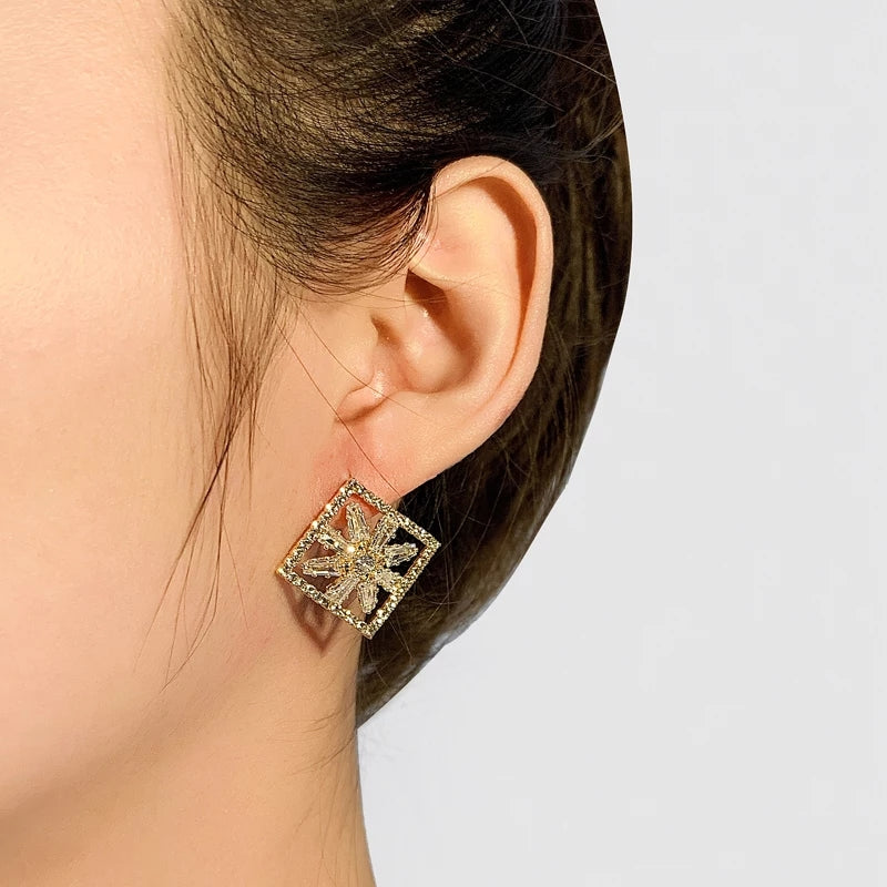 Crystal Burst Square Stud Earrings – Zelvyn