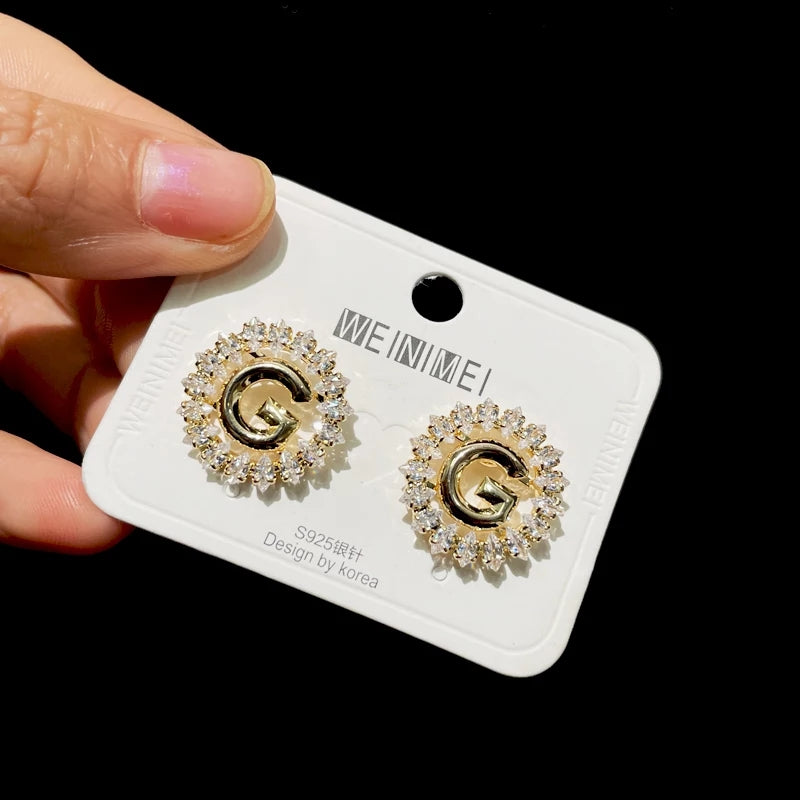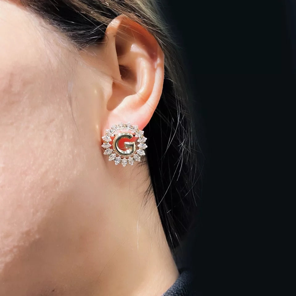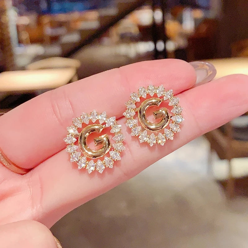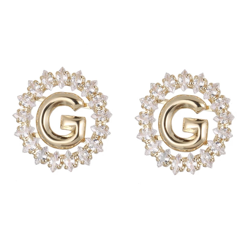 Crystal-Embellished Gold Initial 'G' Monogram Stud Earrings – Zelvyn