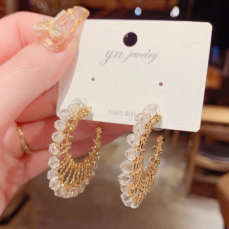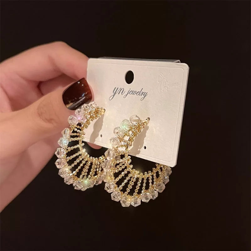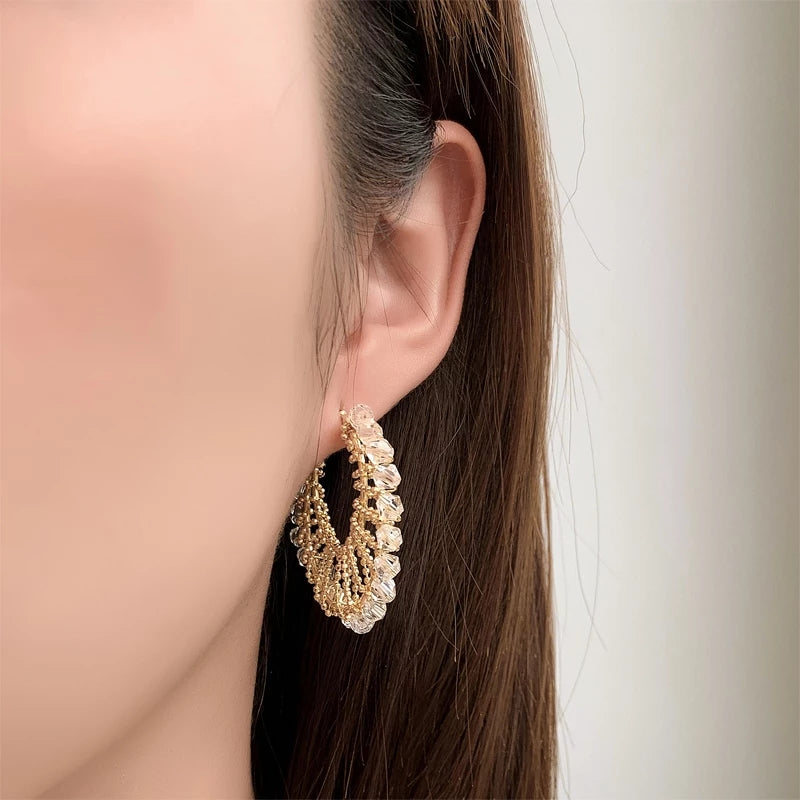 Step into subtle sparkle with these Iridescent Beaded Fan Hoop Earrings. Crafted with delicate golden wiring and translucent pastel beads, the fan-like design adds a whimsical, feminine flair to any look. Lightweight yet eye-catching, they’re perfect for weddings, parties, and casual chic outfits alike.
