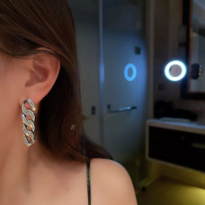 Add a bold edge to your glam with these Pavé Chain Link Drop Earrings. Designed with shimmering rhinestones encrusted on interlocking links, these earrings bring a perfect fusion of modern street style and high-end sparkle. Lightweight and chic, they’re perfect for evening wear, parties, or turning heads anywhere you go.